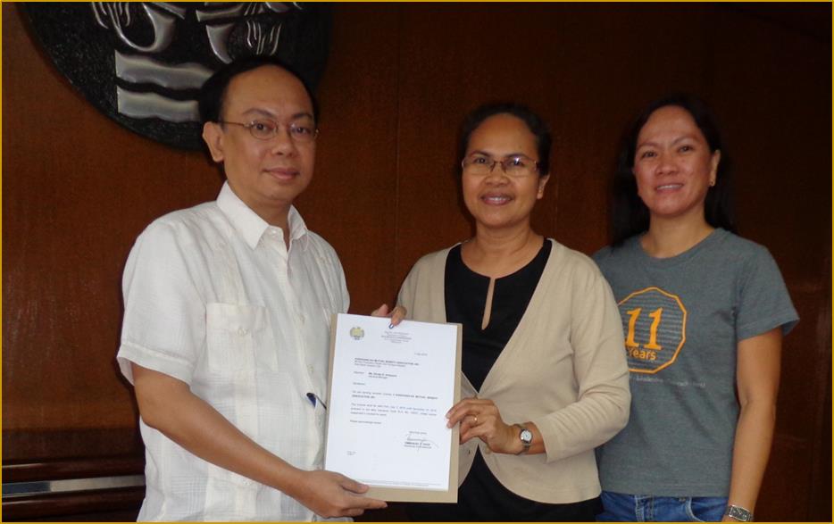 The Insurance Commission has renewed KMBA’s license for the period 2014-2015.Shown in the photo above is IC Deputy Commissioner Dennis Funa handing over the new license to KMBA General Manager Silvida Reyes-Antiquera and Board of Trustees President Elizabeth Yayon. KMBA received its initial IC license in April 2007.